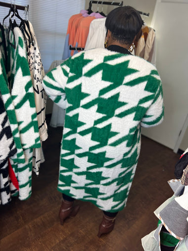 Long Cozy Soft Fuzzy Cardigan (Green/Black/White)